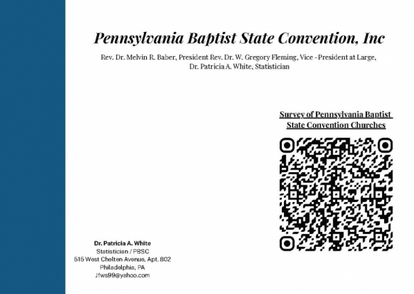 The Statistician oversees the collection and organization of statistical data for the convention and its member churches. Responsibilities include compiling membership statistics, ministry participation data, and other relevant information used for reports, records, and planning purposes. This role helps ensure that accurate and reliable information is available to support the work and mission of the convention.